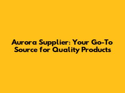 Aurora Supplier: Your Go-To Source For Quality Products
