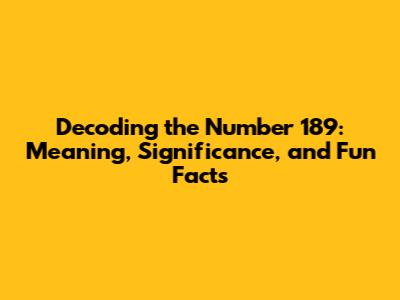 Decoding The Number 189: Meaning, Significance, And Fun Facts