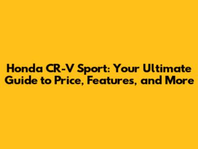 Honda CR-V Sport: Price, Features, And Everything You Need To Know