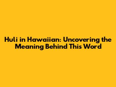 Huli In Hawaiian: Uncovering The Meaning Behind This Word