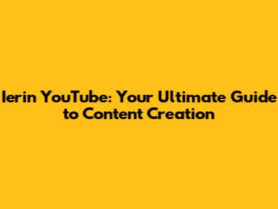 Ierin YouTube: Your Ultimate Guide To Content Creation