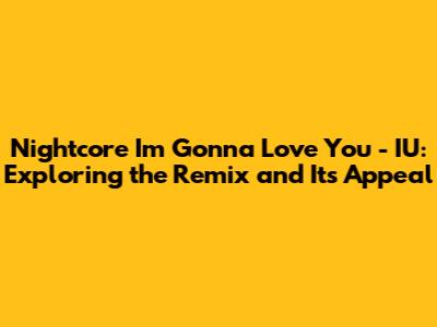 Hey music lovers! Ever stumbled upon a song that just hits different? You know, one that makes you want to crank up the volume and sing along at the top of your lungs? Well, if you haven't yet, let me introduce you to the magic of Nightcore, and specifically, the Nightcore remix of IU's "I'm Gonna Love You." This isn't just any remix; it's a sonic experience that takes an already amazing song and elevates it to a whole new level. Let's dive deep into what makes this particular Nightcore track so special, why it resonates with so many people, and what the Nightcore phenomenon is all about. Get ready to have your ears blessed!
