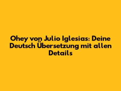 Hey Leute! Habt ihr euch jemals gefragt, was es mit diesem Song "Ohey" von Julio Iglesias auf sich hat? Dieser Klassiker hat viele von uns in seinen Bann gezogen, aber die genaue Bedeutung, besonders in der deutschen Übersetzung, ist oft ein kleines Mysterium. Julio Iglesias ist ja bekannt für seine gefühlvollen Balladen, die oft von Liebe, Sehnsucht und dem süßen Schmerz des Lebens handeln. "Ohey" ist da keine Ausnahme. Wenn du also wissen willst, was hinter den spanischen Zeilen steckt und wie sie auf Deutsch rüberkommen, dann bist du hier genau richtig! Wir tauchen tief ein in die Lyrics, analysieren die Botschaft und schauen, warum dieser Song auch nach all den Jahren noch so relevant ist. Packt euch einen Kaffee oder ein Glas Wein, lehnt euch zurück und lasst uns gemeinsam die Magie von "Ohey" entschlüsseln.
