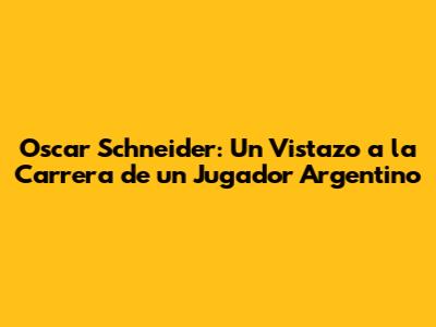 Oscar Schneider: La Trayectoria De Un Jugador Argentino