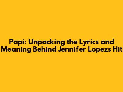Papi: A Deep Dive Into Jennifer Lopez's Hit Song