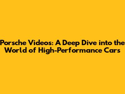 Porsche Videos: A Deep Dive Into The World Of High-Performance Cars