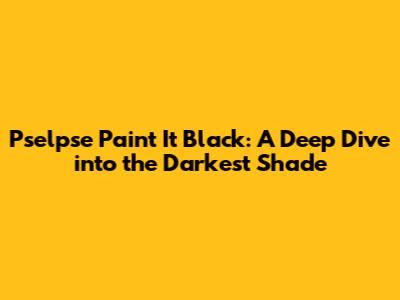 Pselpse Paint It Black: A Deep Dive Into The Darkest Shade