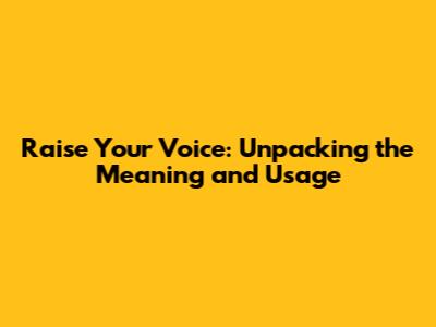 Raise Your Voice: Unpacking The Meaning And Usage