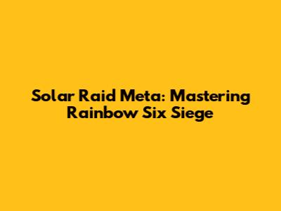 Solar Raid Meta: Rainbow Six Siege Strategies & Tips