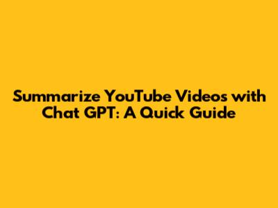 Summarize YouTube Videos With Chat GPT: A Quick Guide