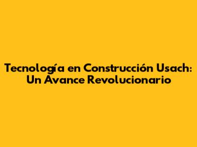 Tecnología En Construcción Usach: Un Avance Revolucionario
