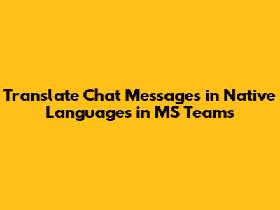 Translate Chat Messages In Native Languages In MS Teams