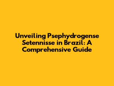 Unlocking The Secrets Of Psephydrogense Setennisse In Brazil