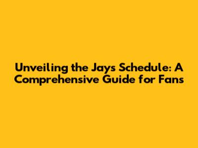 Unveiling The Jays' Schedule: A Comprehensive Guide For Fans